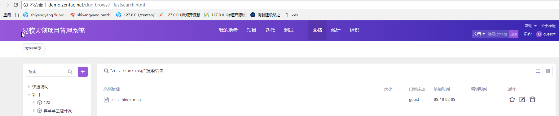 demo.zentao.net 上操作结果如下图所示,麻烦到http://demo.zentao.net/doc-browse-17-all-0-id_desc-doc.html 操作看一下是否能重现。