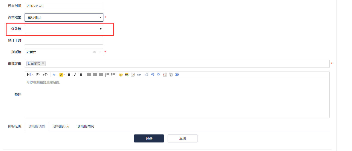 你要选择一个评审结果,才会出现优先级选项,但是优先级的选项没有带出之前的新建需求所选的值哈