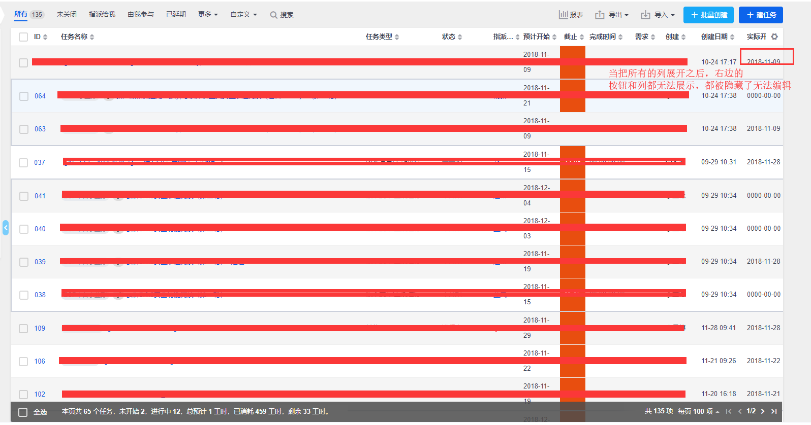 任务列表中,当把所有的列显示的时候,最右边的按钮和列都会被隐藏,隐藏之后无法操作
