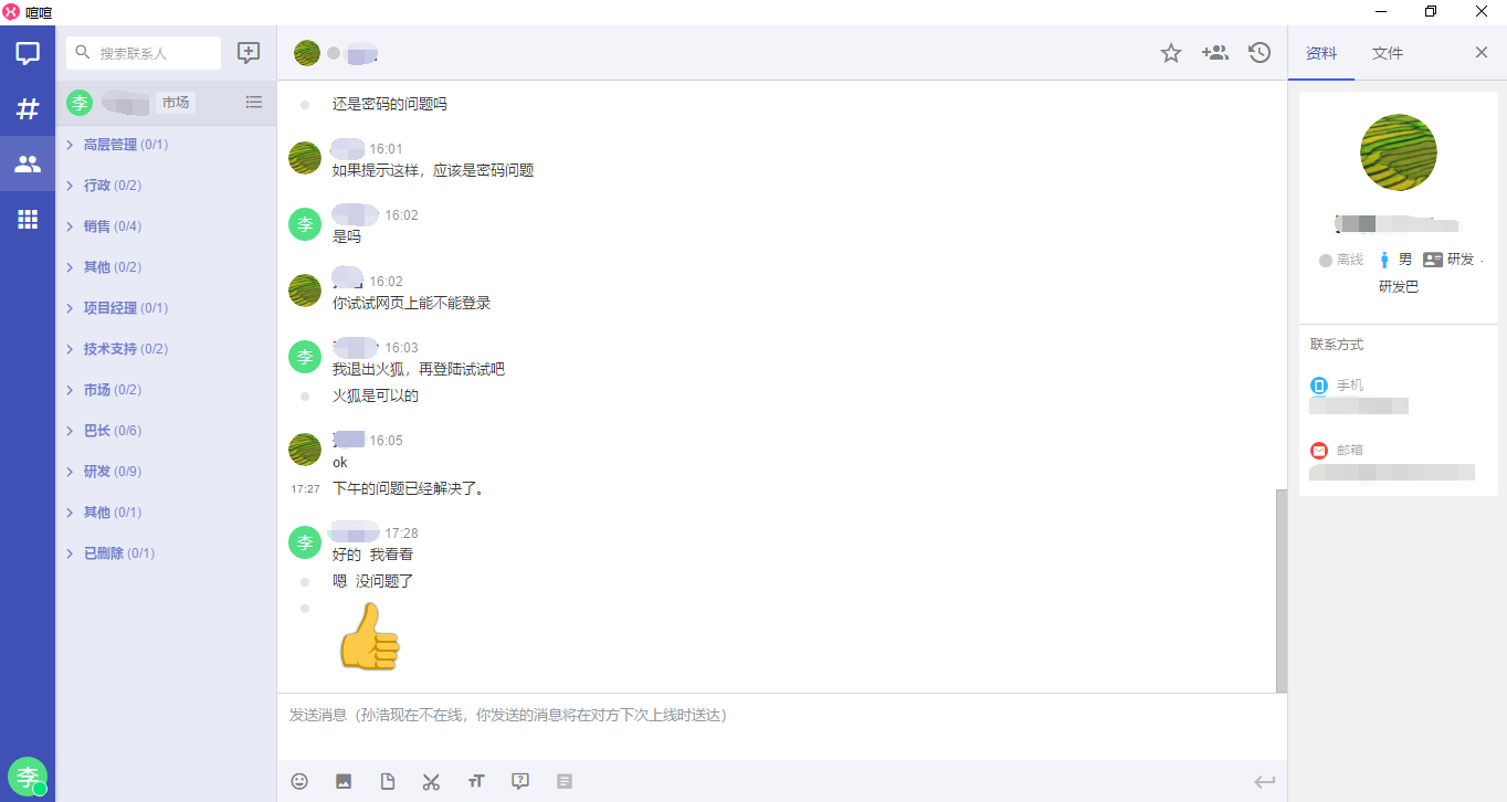 喧喧是由然之协同 团队推出的一款轻量级的开源企业聊天软件。提供企业内部通讯交流、企业通讯录、协同办公 通讯交流、企业IM解决方案。喧喧官网:http://xuan.im/