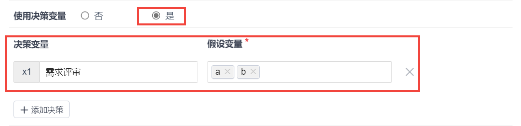 - 单个决策变量可包含多个假设变量