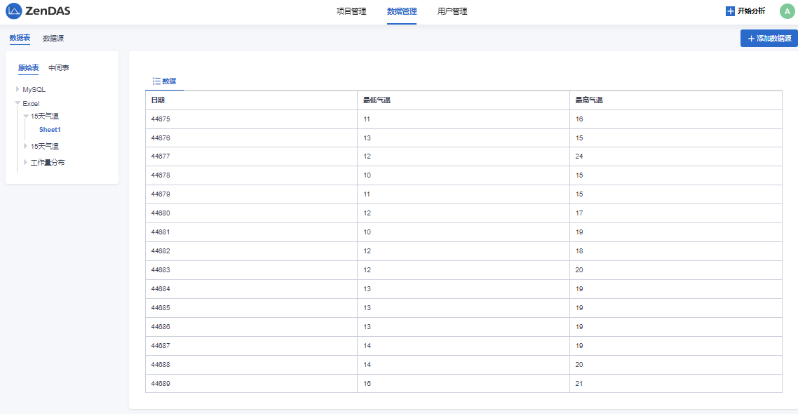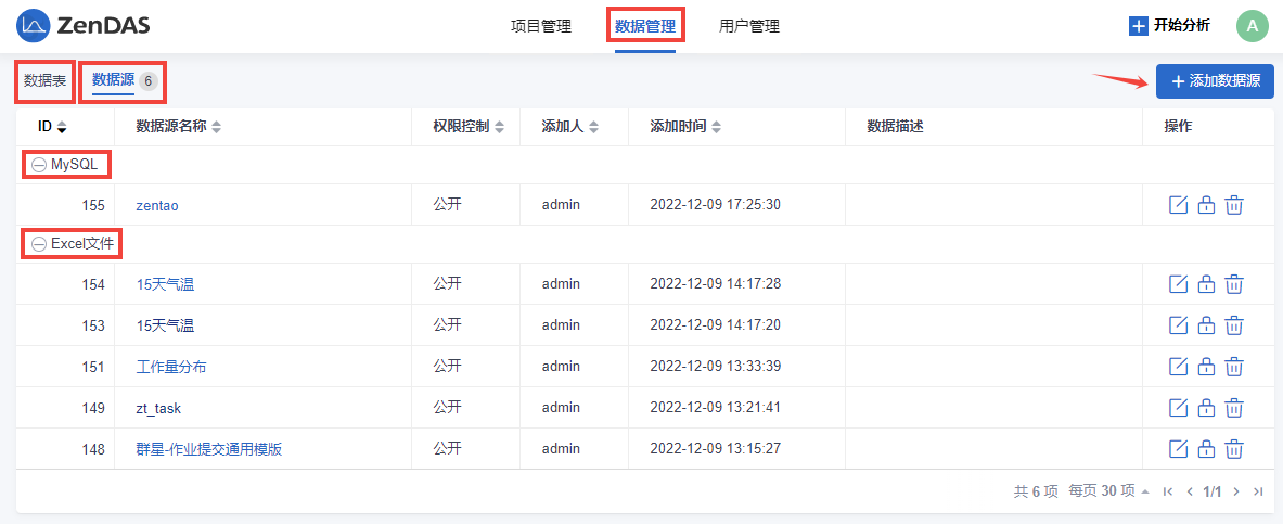 - 数据管理区分数据源和数据表;