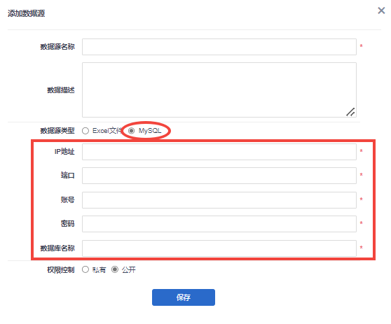 - 数据源支持连接MySQL数据库,支持连接Excel文件;