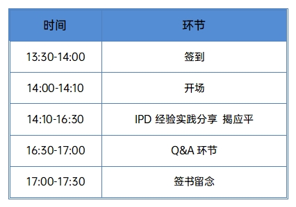 本次活动将分享【IPD(集成产品开发)】的知识与实践,通过分析行业环境、理解市场、定位用户、管理需求、优化方向、研发产品等多个环节,讲透产品研发管理全流程,带大家深入感知IPD的整体管理流程,实现IPD管理方法的落地,跨越从「知」到「行」的障碍!活动流程