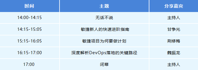 【活动地点】徐家汇区漕溪北路339号百脑汇商场4楼-滔滔堂新人如何从0到1快速上手敏捷管理方法,小白如何快速开启敏捷项目转型,如何在没有任何经验的情况下成功落地敏捷实践呢?甘争光老师将结合自身多年敏捷项目管理一线实战经验,手把手地教会你如何导入敏捷管理,并成功落地实践。帮助正处在转型迷茫期的敏捷新人,开启个人的敏捷之旅。