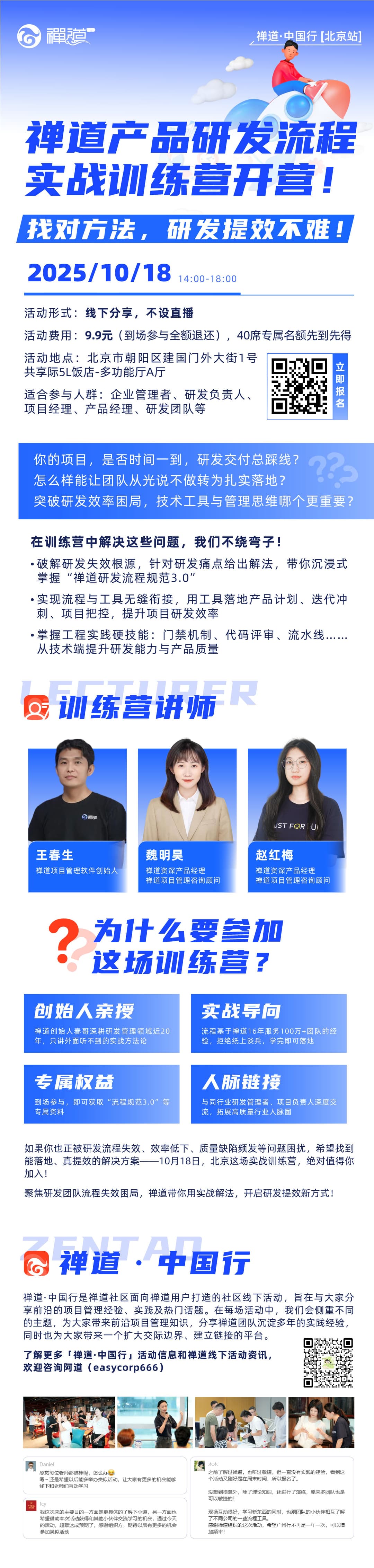 零成本学实战!禅道产品研发流程实战训练营:创始人亲授+行业人脉,一次搞定研发难题!| 禅道中国行北京站