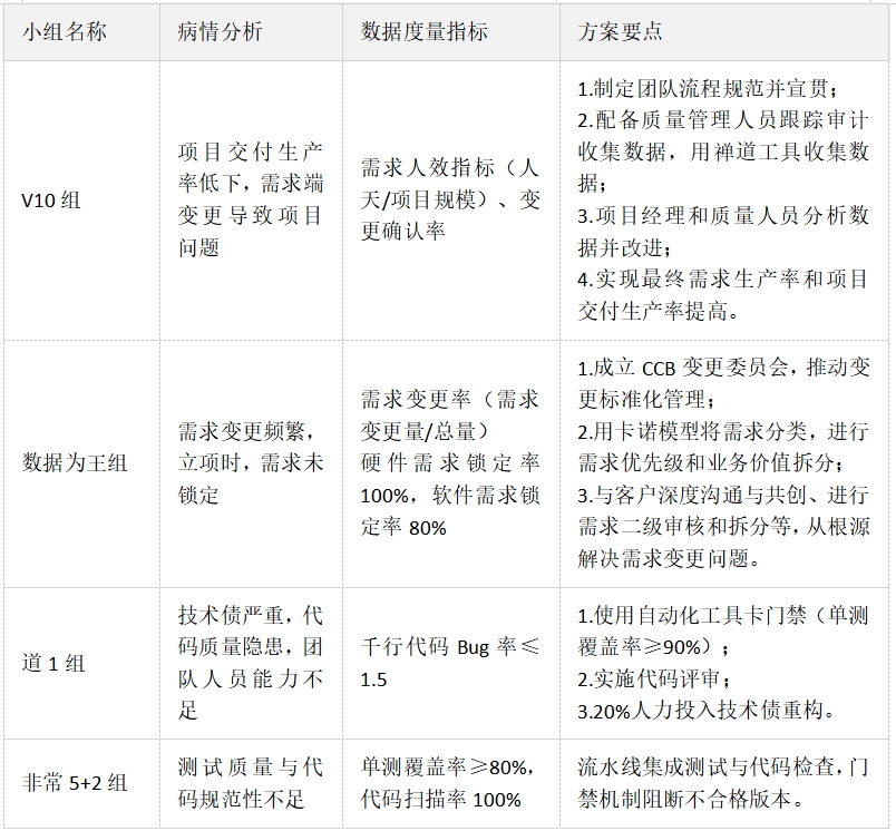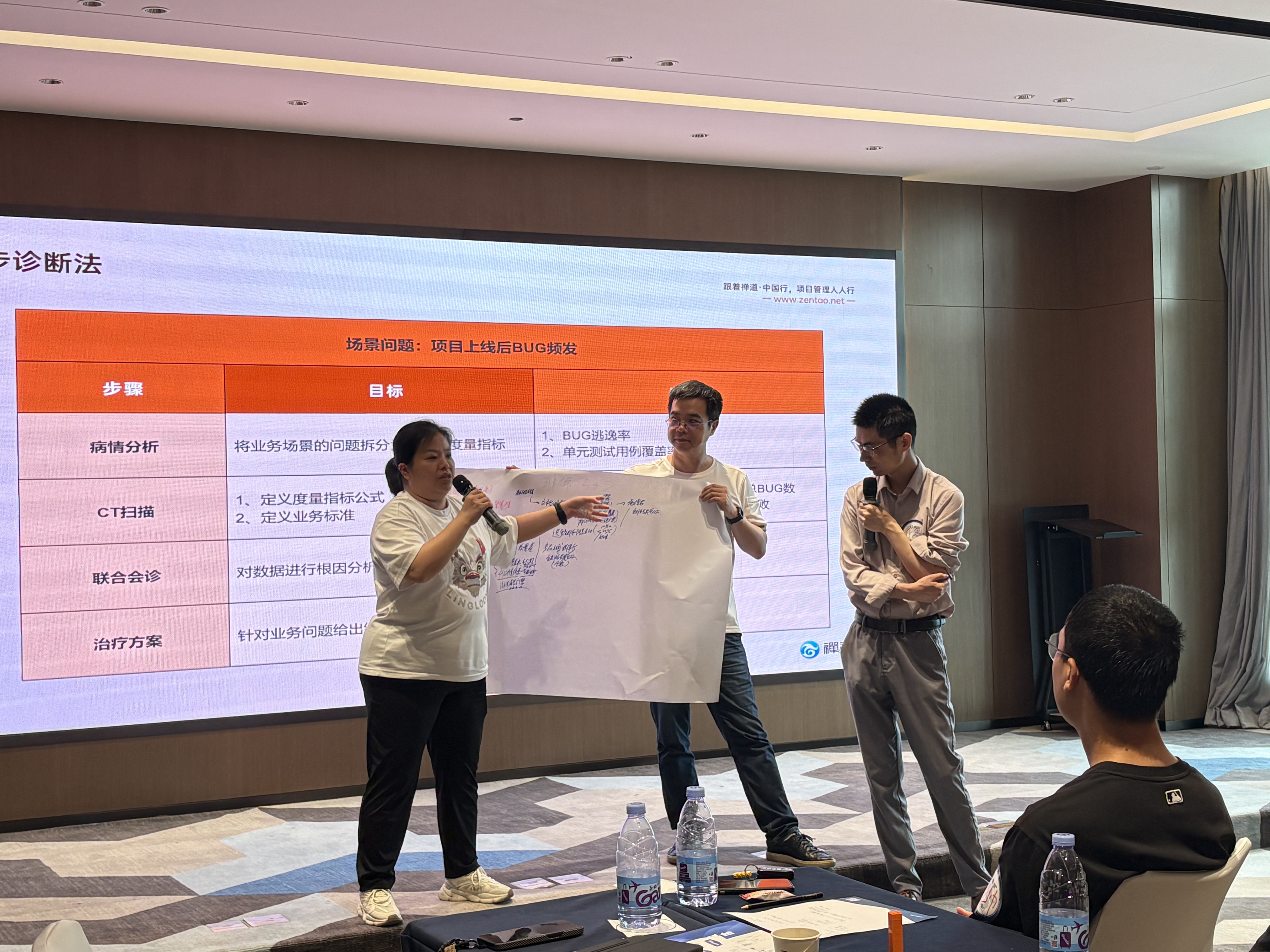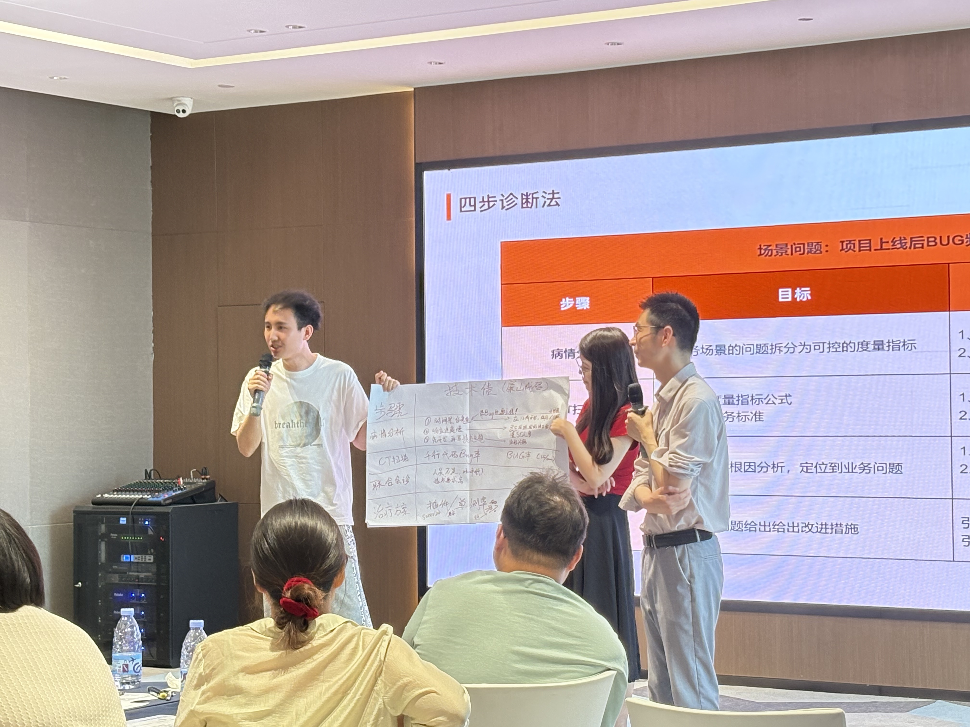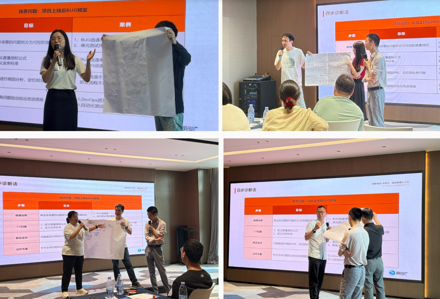活动以分组研讨的形式拉开帷幕,现场“V10 组”“数据为王组”“道 1 组”“非常5+2组”四组通过头脑风暴,将项目管理中的真实困境转化为可量化的痛点,并输出可量化的、系统性的解决方案: