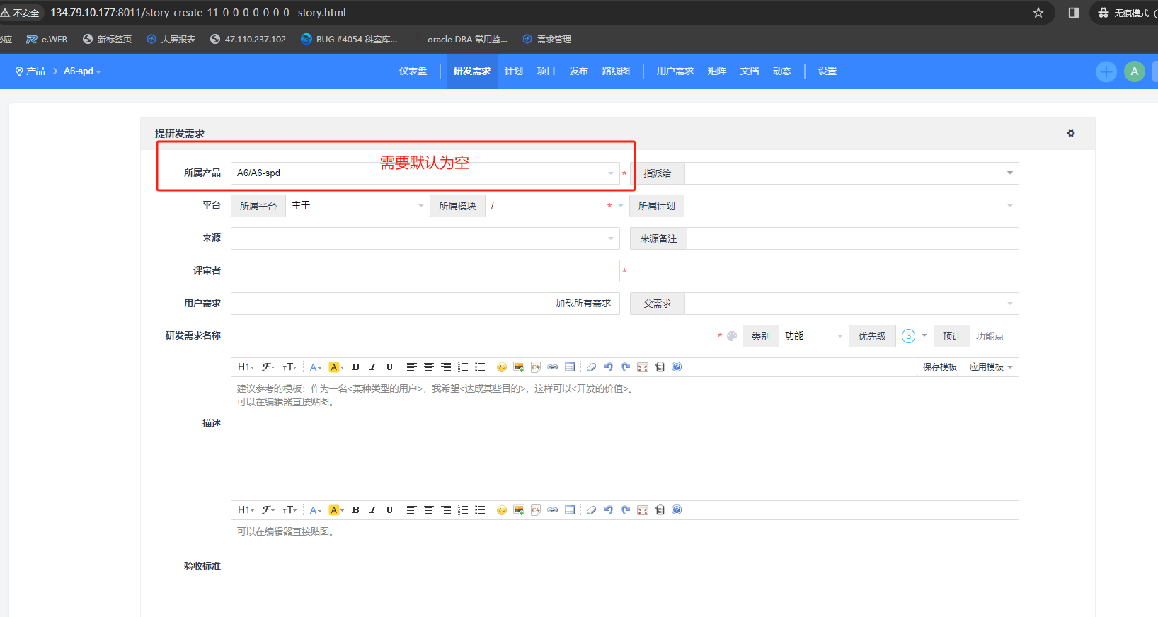 研发需求-提研发需求:想要所属产品默认为空并且支持选择,这个需要怎么实现?