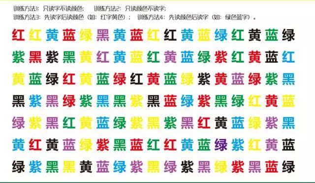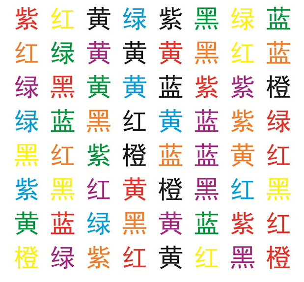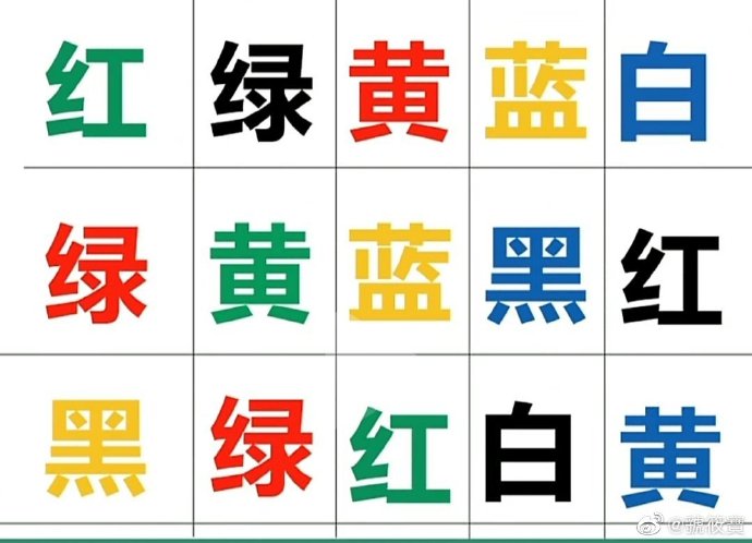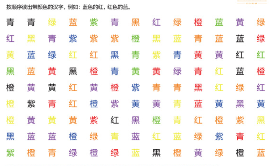 请挑战者依次读出下列各字的颜色,注意,是颜色,不是识字!